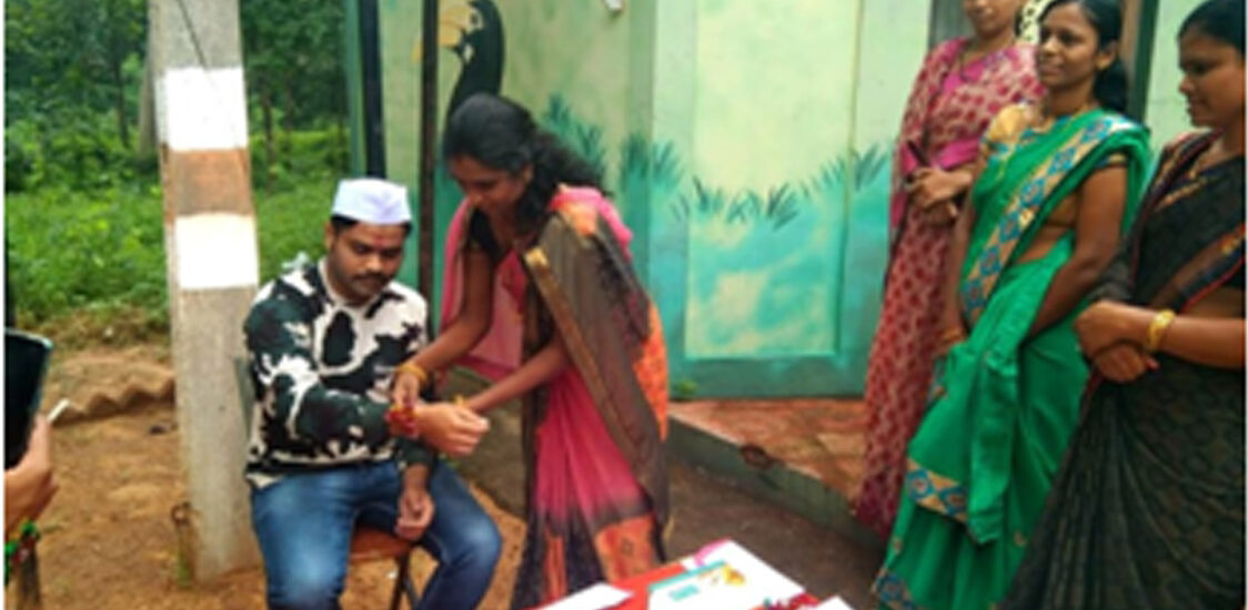 The rakhi used in program is specially made by local ladies from Pride of Pench Self Help Group(SHG) and Khun fabric provided by Exploring Womanhood Collection and provided special assistance for rakhi making by the Exploring Womanhood Foundation.